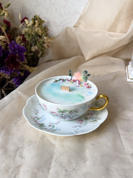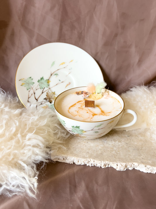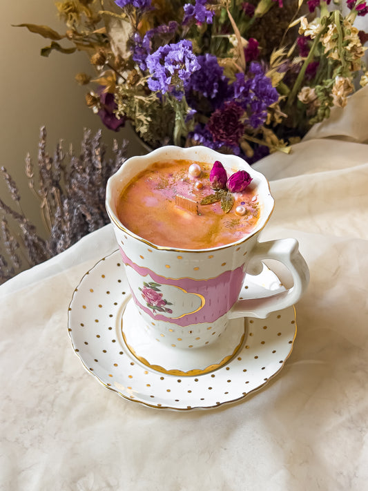 Each candle is hand-poured into a one-of-a-kind vintage teacup, chosen for its timeless elegance and story-filled charm. These pieces are more than candles – they’re moments from the past, brought back to life with scent, warmth, and meaning.