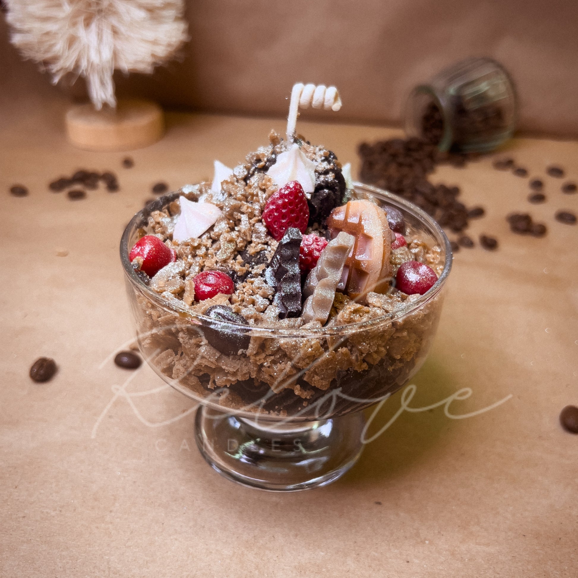 Candle Lover Gift - Chocolate Mousse Dessert Candle - Sweet Candle decorated with chocolate , crumble and strawberries. This candle scented with dessert fragrance of Chocolate Pralines.