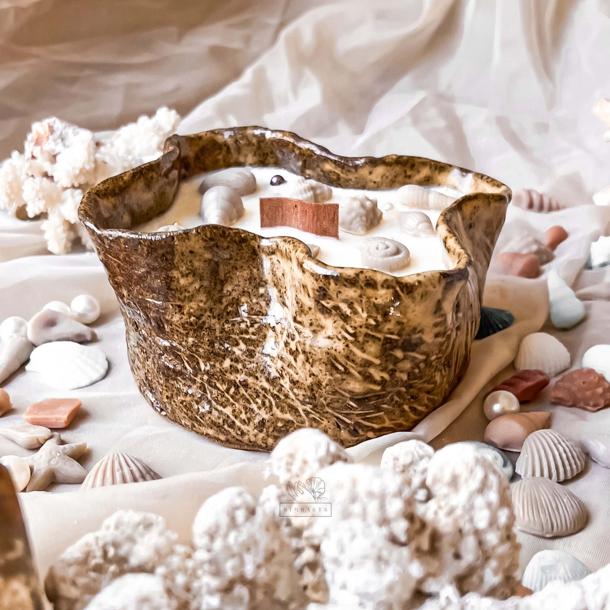 -the candle is hand-poured in a beautiful vintage bowl which can be used for other purposes after you use up the candles.