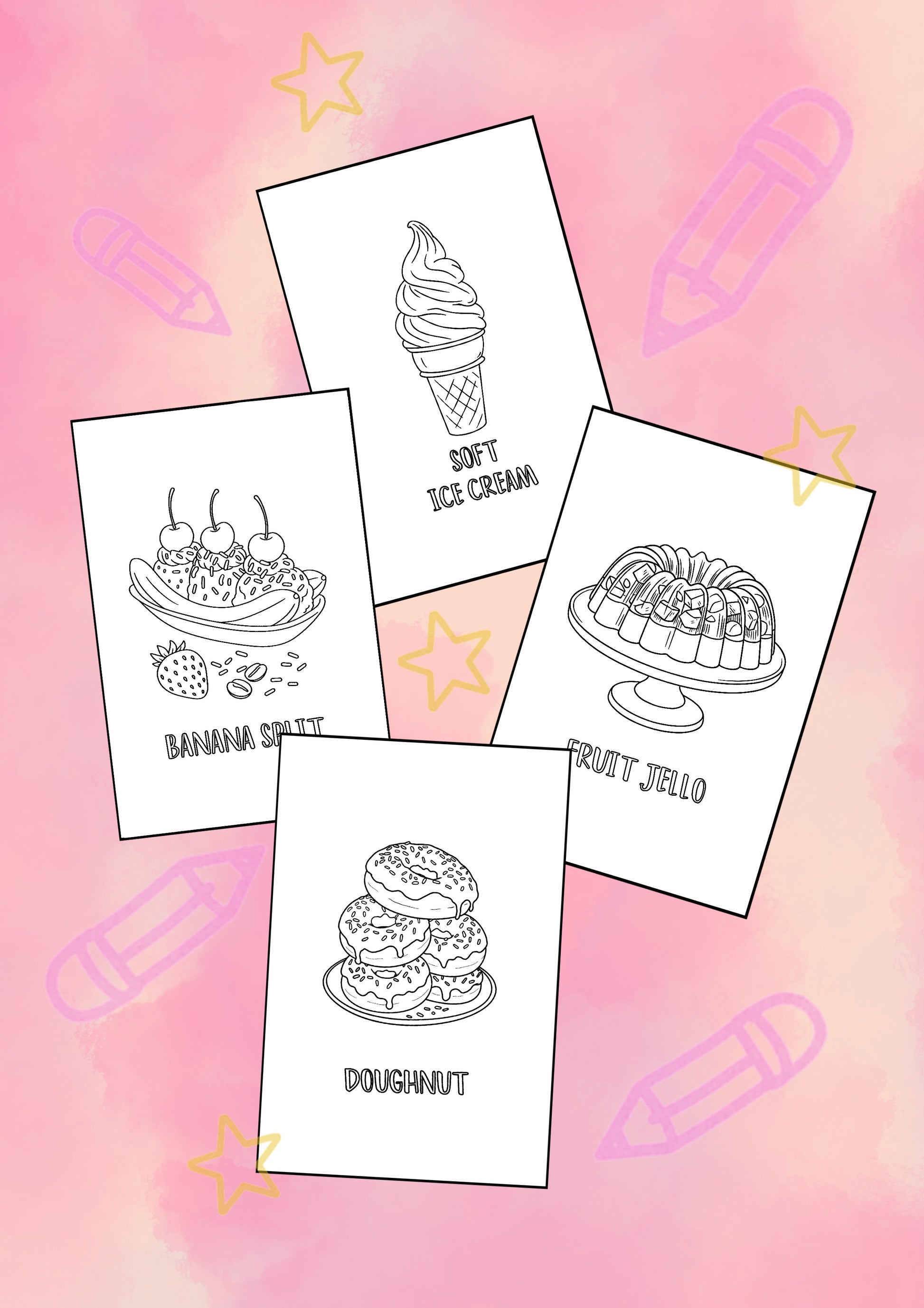 This physical coloring book is perfect for quiet moments, self-care time, or as a thoughtful gift for anyone who loves food, sweets, and cozy vibes.