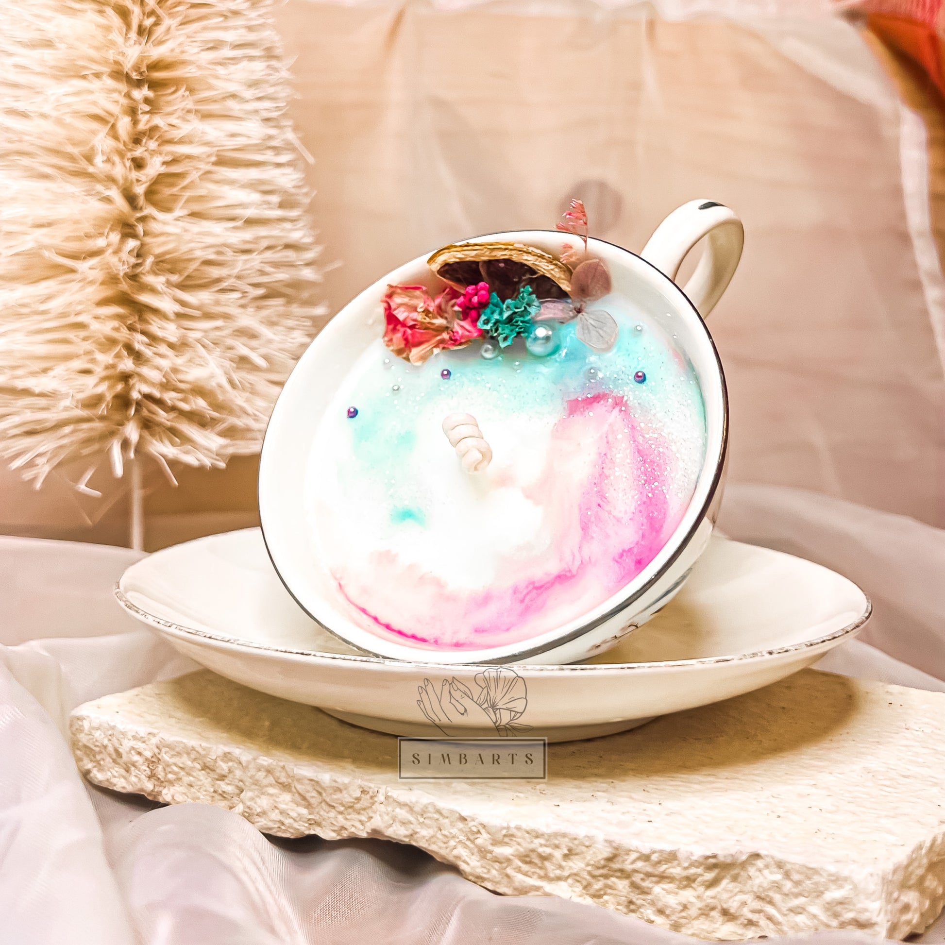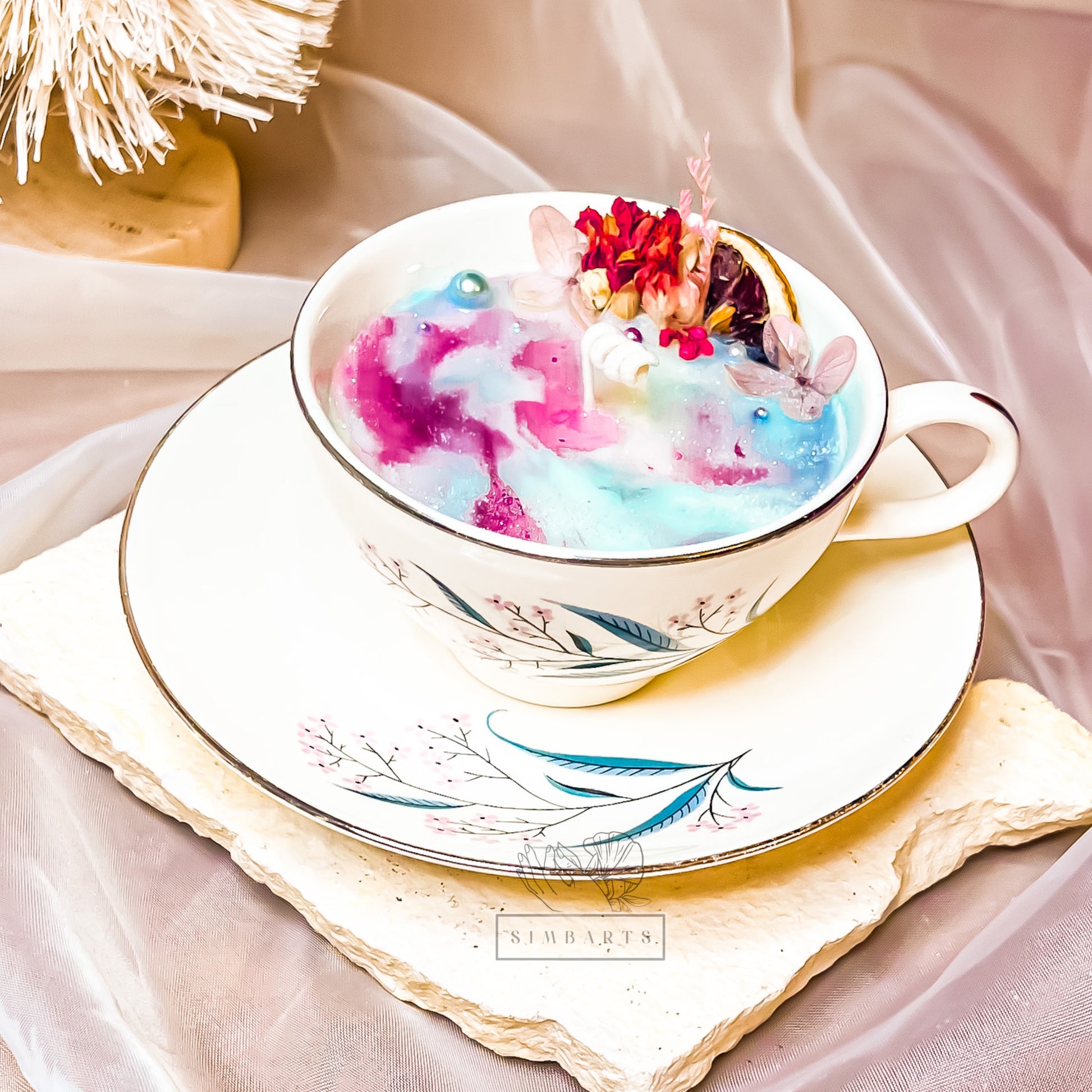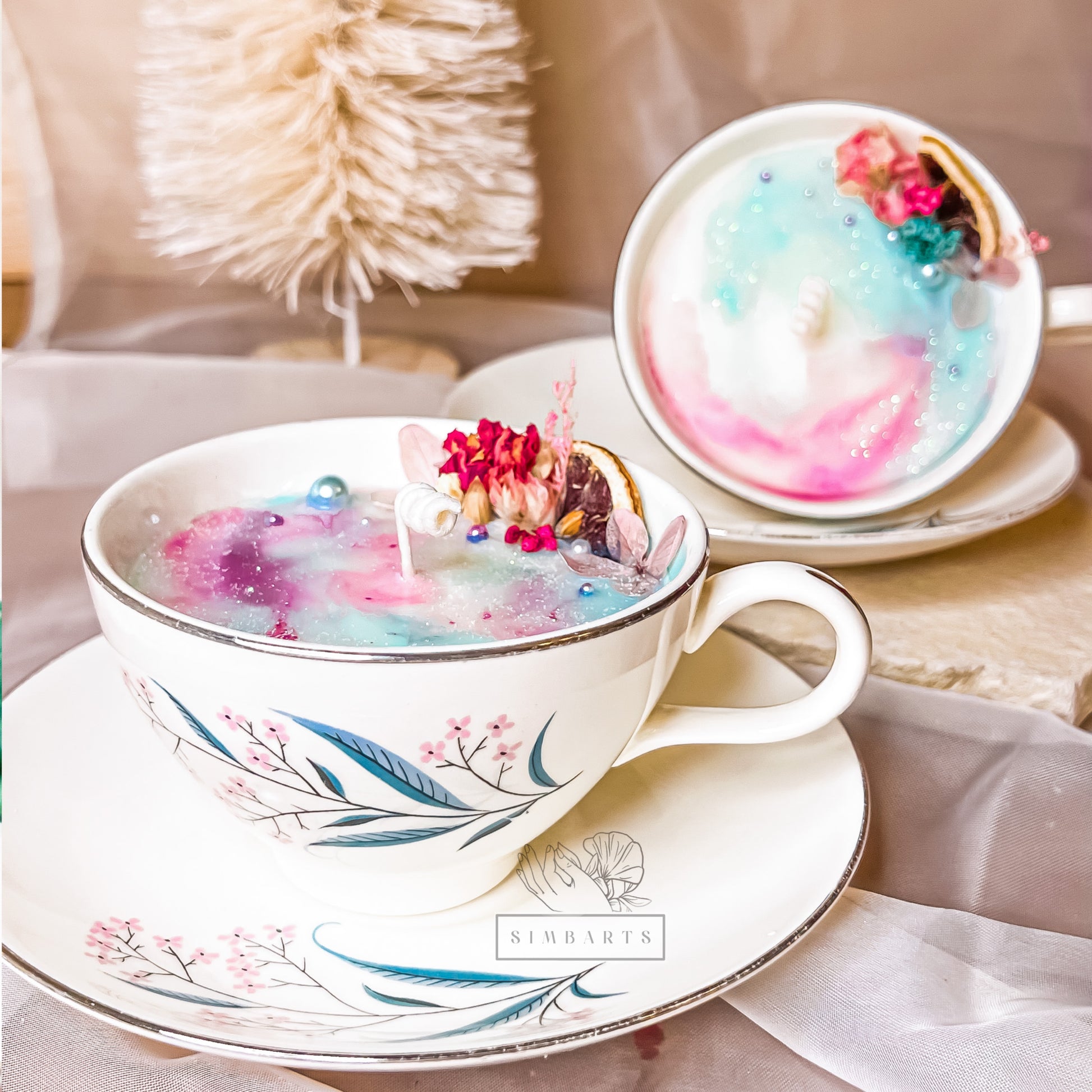 Luxury Unique TEA CUP CANDLE + SAUCER , Eco-Friendly Candle With A Strong Scent .