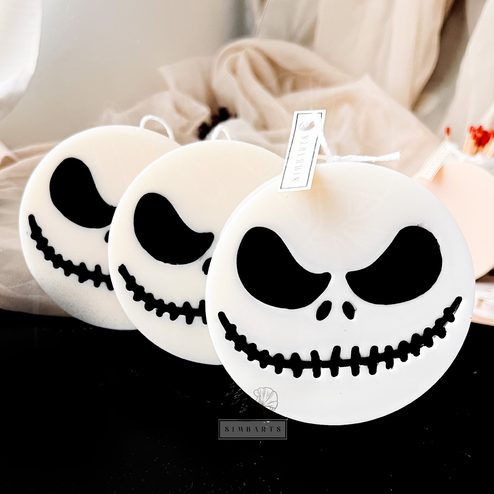 Handcrafted ‘Jack Skellington’ circles pillar candle .