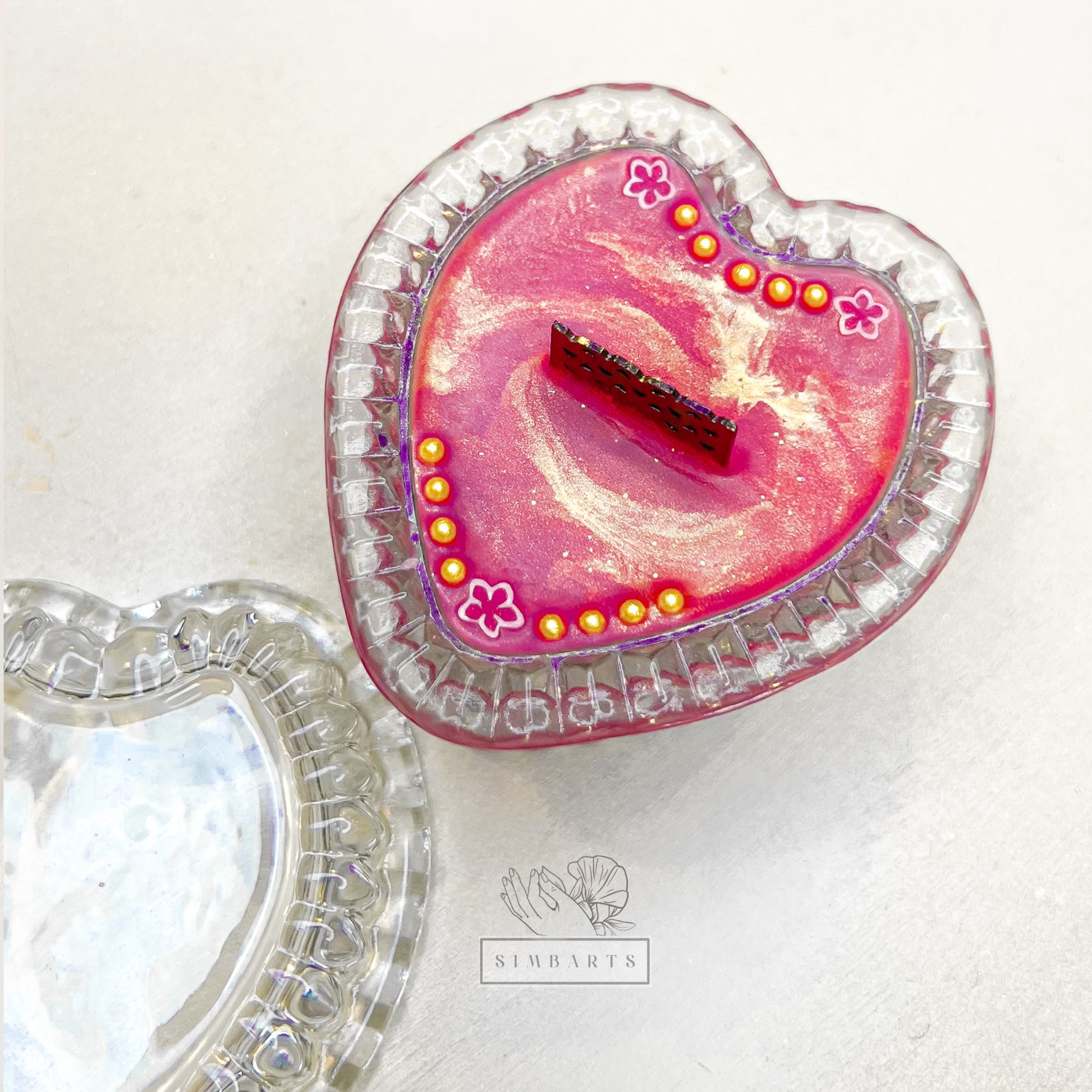One of a Kind Unique handmade candle inside little heart glass box. enjoy the smell of Strawberry Bubble gum scent.