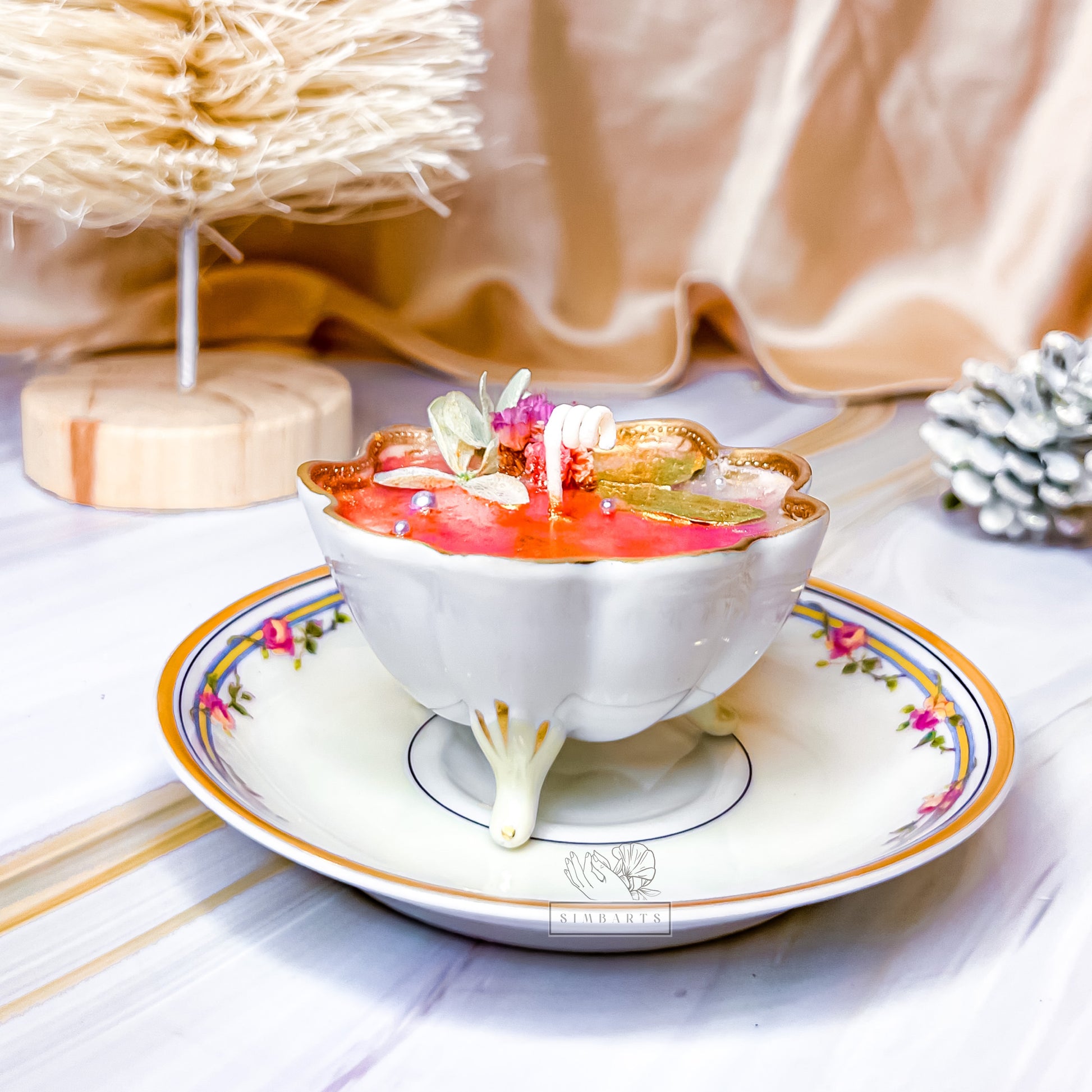 Luxury Unique TEA CUP CANDLE , Eco-Friendly Candle With A Strong Scent .