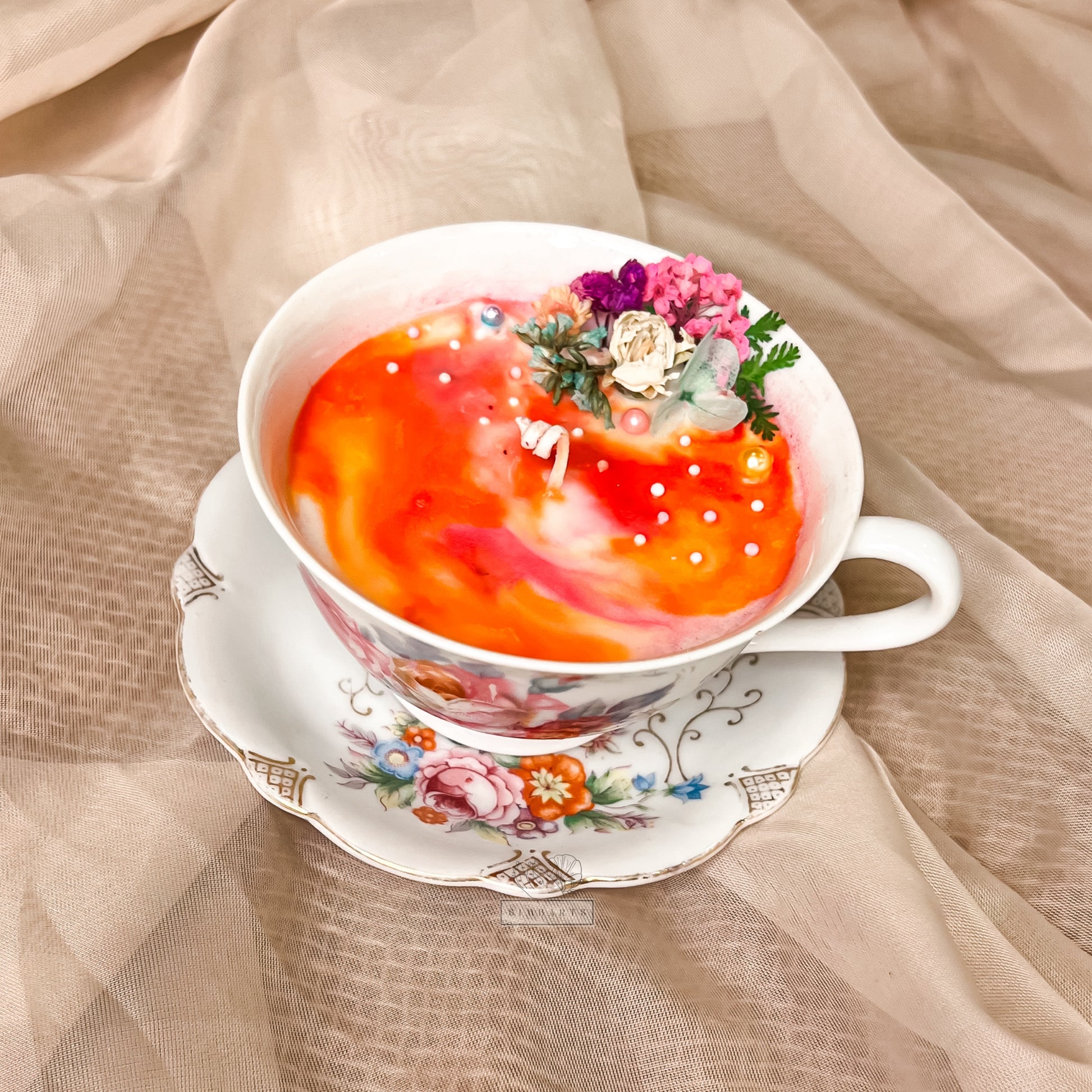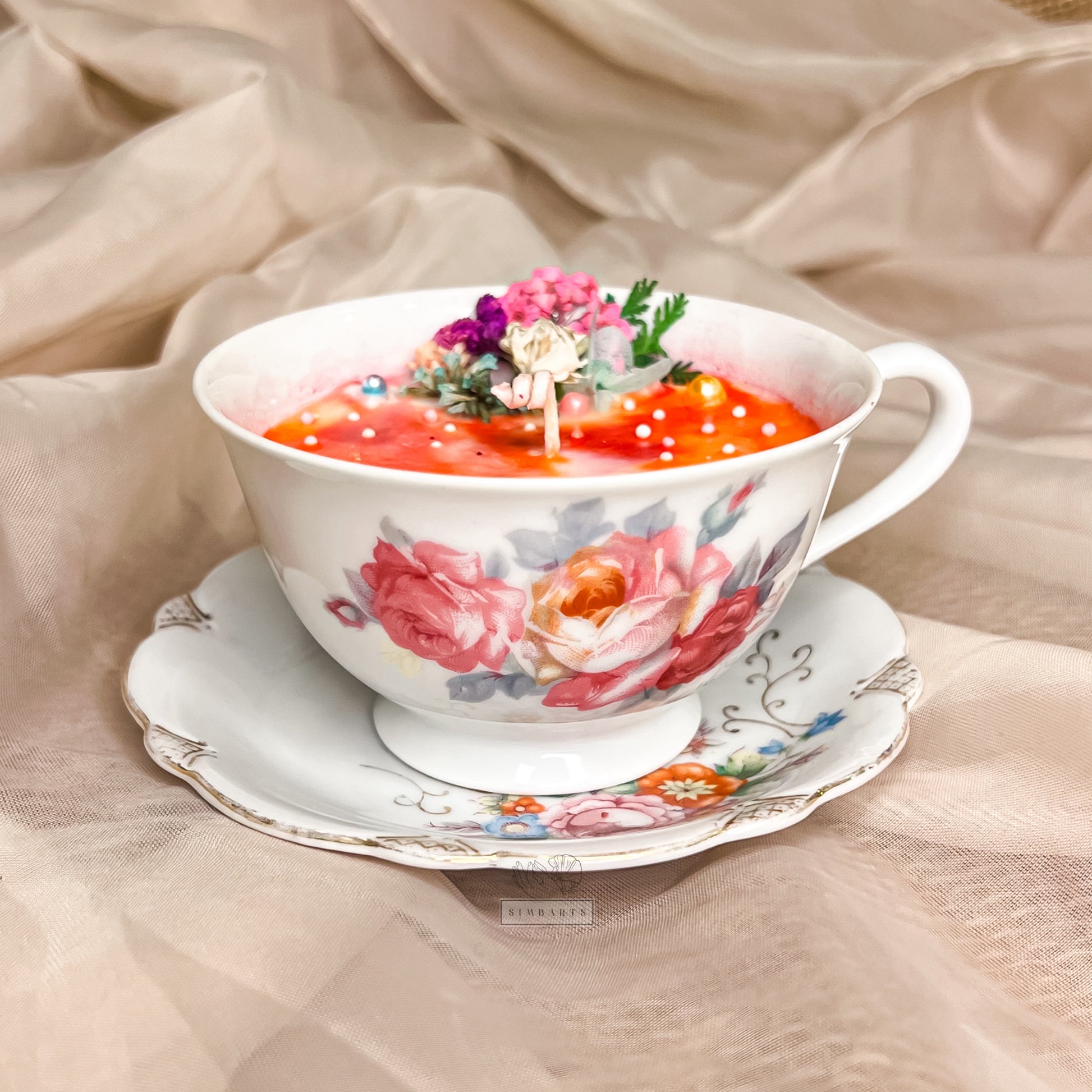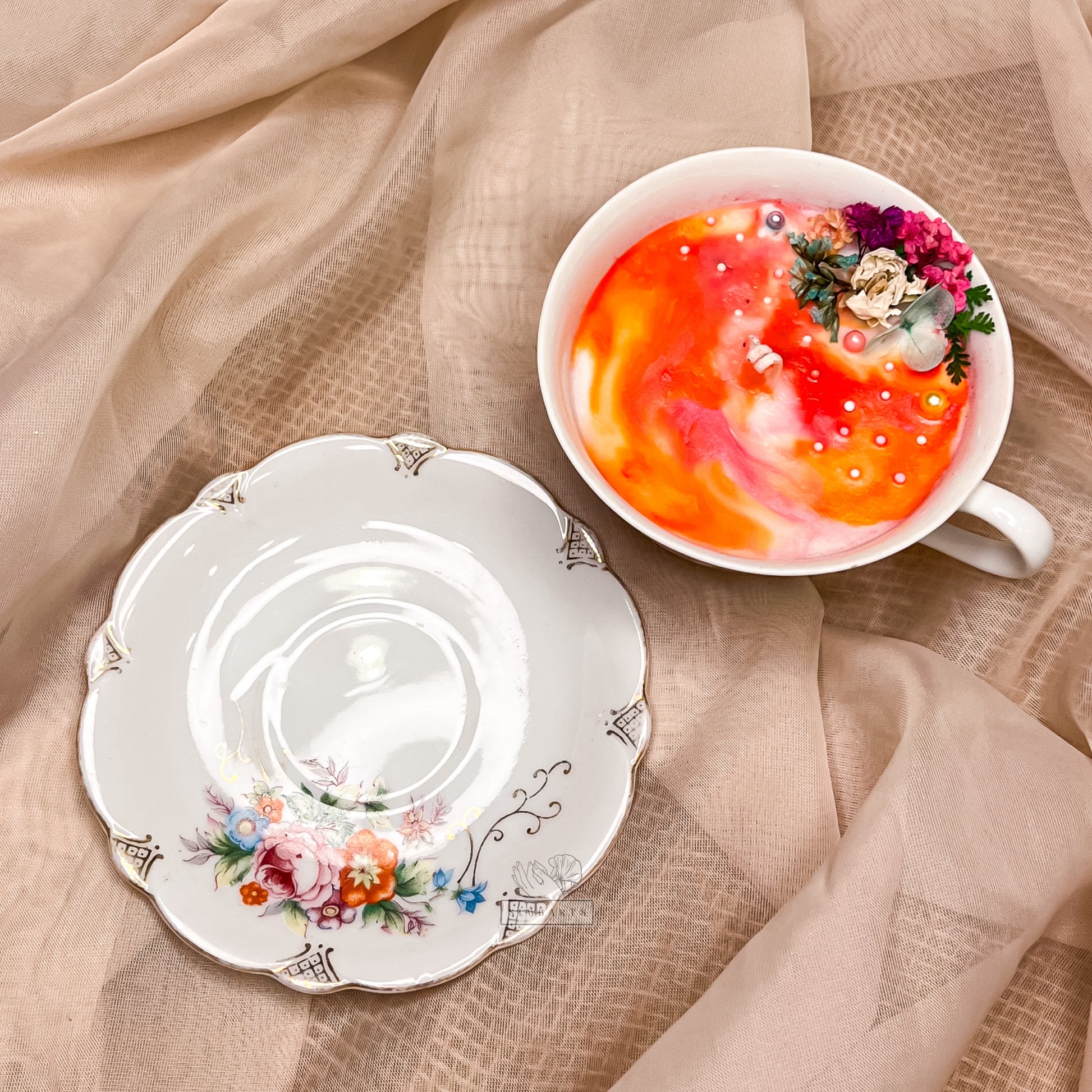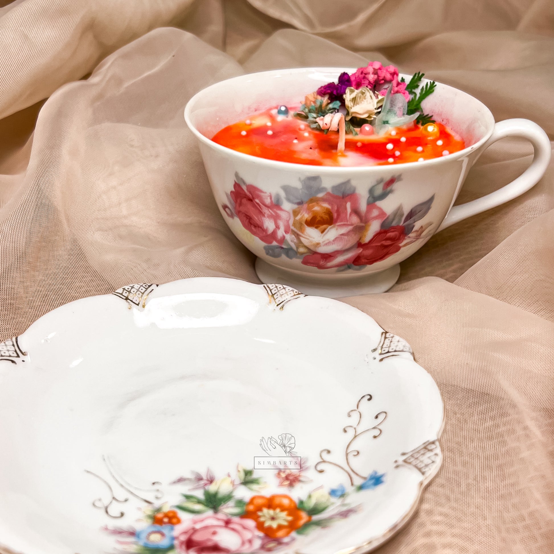 Luxury Unique TEA CUP CANDLE + SAUCER , Eco-Friendly Candle With A Strong Scent